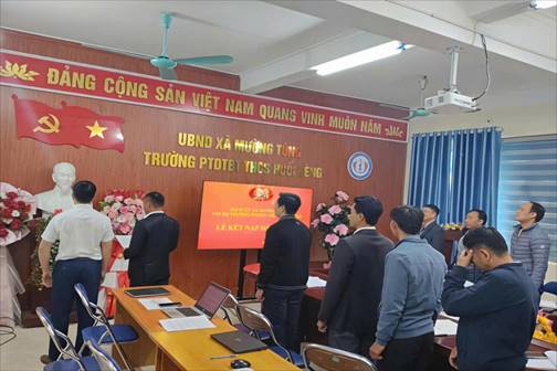 Dự buổi lễ có đồng chí Giàng A Cở Phó trưởng ban xây dựng Đảng, Đảng ủy xã Mường Tùng; đồng chí Đào Xuân Lợi – Bí thư Chi bộ, đồng chí Nguyễn Minh Cảnh – Phó Bí thư Chi bộ cùng toàn thể đảng viên trong Chi bộ nhà trường. Buổi lễ được tổ chức trang nghiêm, đúng trình tự, thủ tục theo quy định của Điều lệ Đảng.