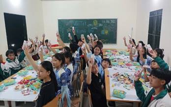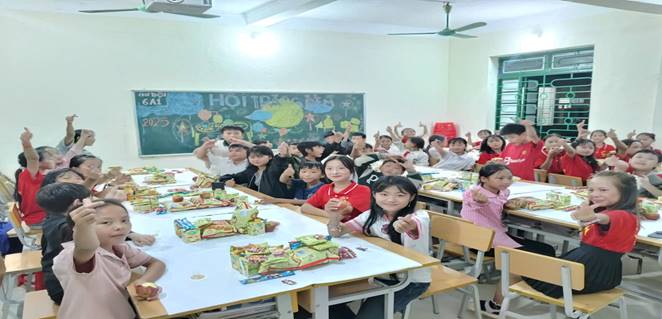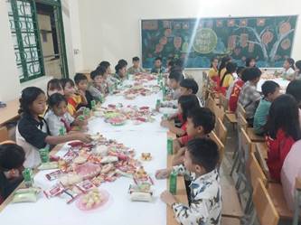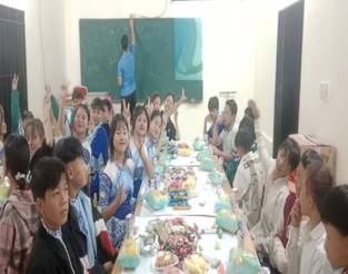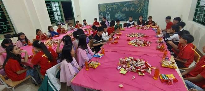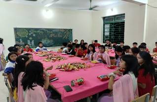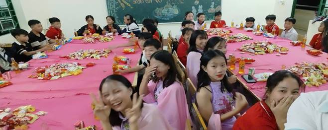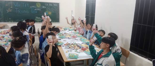 Không khí rộn ràng – Gắn kết yêu thương ngay từ đầu giờ tối, các lớp học đã được trang trí rực rỡ với đèn lồng, bóng bay và mâm cỗ Trung thu đầy màu sắc. Các em học sinh háo hức cùng nhau bày biện bánh kẹo, trái cây, cùng chia sẻ niềm vui trong ánh trăng tròn và tiếng cười hồn nhiên. Mỗi lớp đều mang đến một phong cách trang trí riêng, thể hiện sự sáng tạo, tinh thần đoàn kết và tình cảm gắn bó giữa thầy và trò. Không chỉ là dịp vui chơi, đây còn là cơ hội để các em học sinh hiểu thêm về ý nghĩa của ngày Tết Trung thu – ngày của tình thân, của sự sẻ chia và yêu thương.