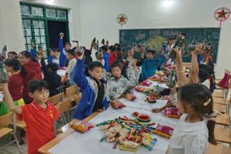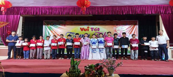 Tiếp đó là phần quà cho 12 em học sinh có hoàn cảnh khó khăn, những phần quà ý nghĩa được trao tận tay các em do một nhà hảo tâm, mạnh thường quân anh Nguyễn Văn Hùng ( Hùng bờ hồ), Yên Mỹ, Thái Bình (Hưng Yên cũ ) trao tặng, với mong muốn mang lại niềm vui, động lực và tình yêu thương trong dịp Tết Trung thu. Mỗi món quà tuy nhỏ bé nhưng chứa đựng sự quan tâm, sẻ chia và tinh thần nhân ái, giúp các em cảm nhận được sự quan tâm của thầy cô, bạn bè và cộng đồng. Ánh mắt rạng rỡ, nụ cười hồn nhiên của các em khi nhận quà chính là hình ảnh đẹp nhất của đêm hội.