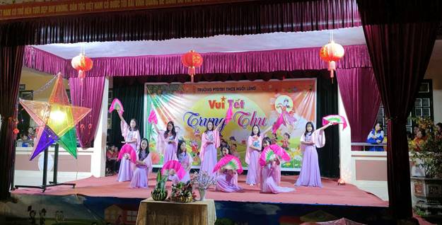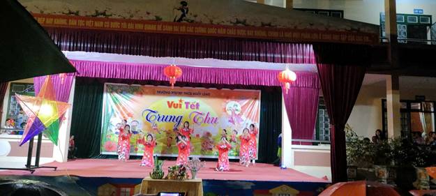Sân trường rộn ràng tiếng hát, tiếng cười, ánh đèn lung linh hòa cùng tiếng trống lân ngân vang khắp không gian, tạo nên một đêm Trung thu thật đáng nhớ.