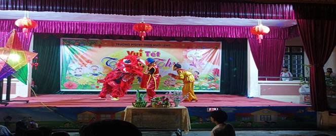 Tiết mục múa Lân do các thầy cô và các bạn học sinh của trường biểu diễn