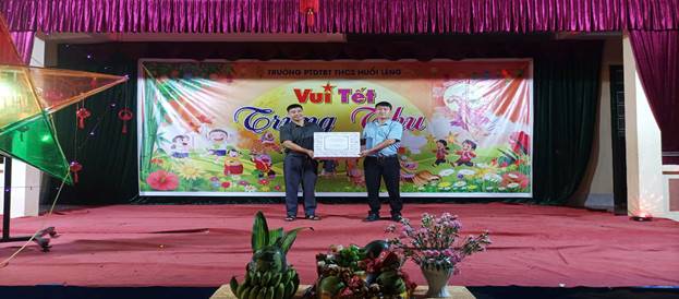 Sau phần thi văn nghệ, chương trình trở nên xúc động và ấm áp hơn với phần trao quà Trung thu của bộ phận văn hóa xã Mường tùng.