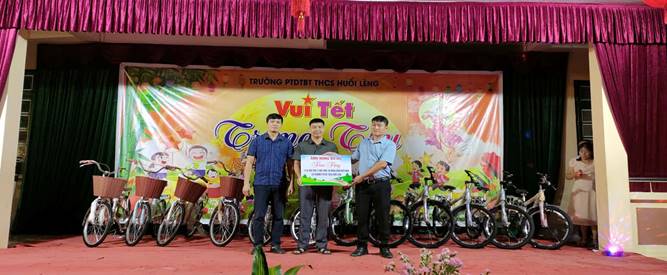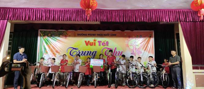 Hình ảnh trao tặng xe cho 12 học sinh.
