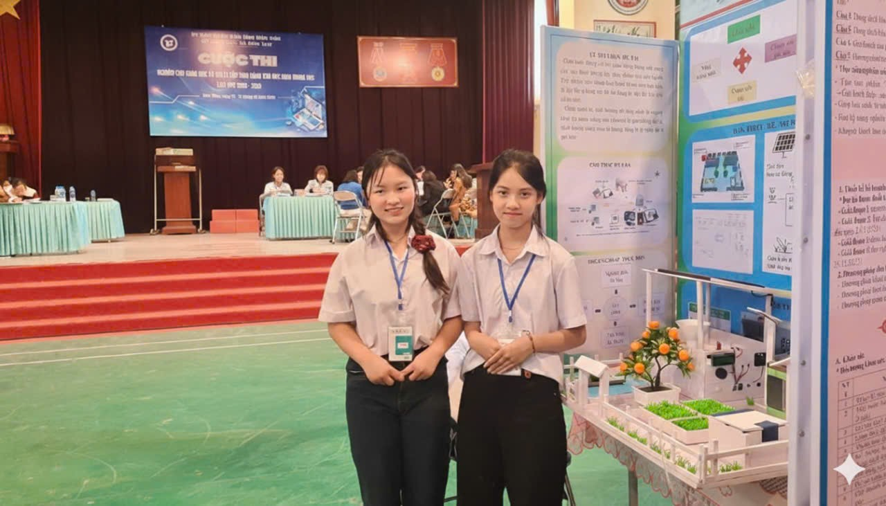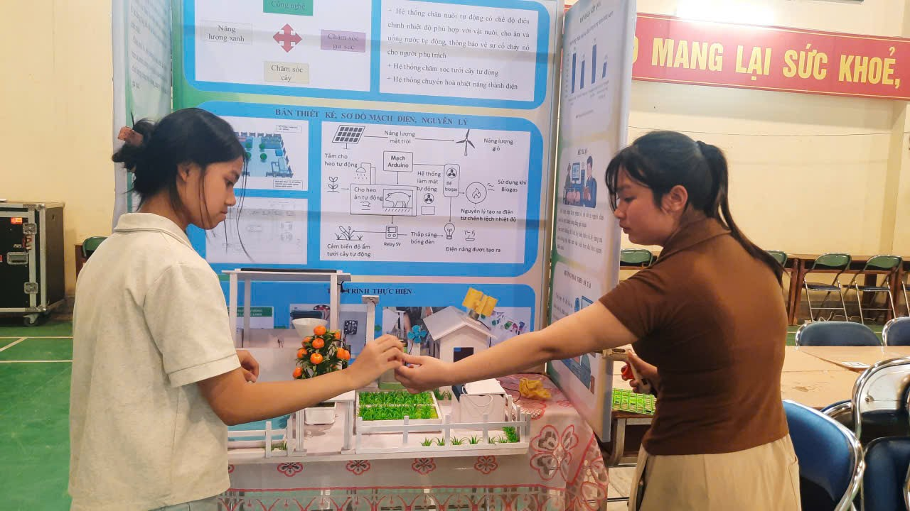 Dự án “Hệ thống chăn nuôi tự động ứng dụng sinh khối xanh” của học sinh Lý Thị Bích Vân và Hoàng Lê Ngọc Hà (lĩnh vực Kĩ thuật môi trường) đã đạt giải NHÌ, là minh chứng cho khả năng vận dụng kiến thức liên môn vào đời sống.