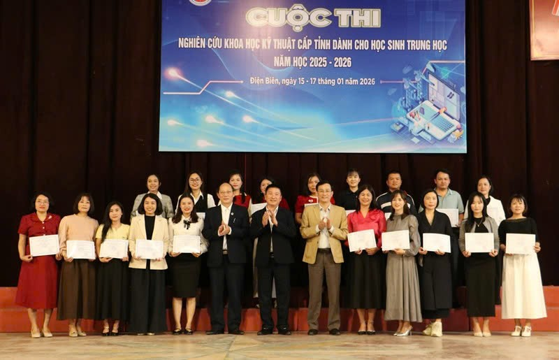 Ảnh: Trao Chứng nhận cho các thầy cô hướng dẫn HS đạt giải nhất, nhì.