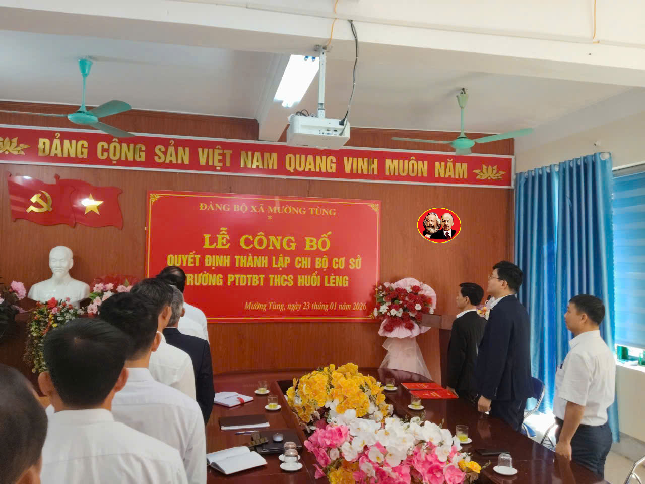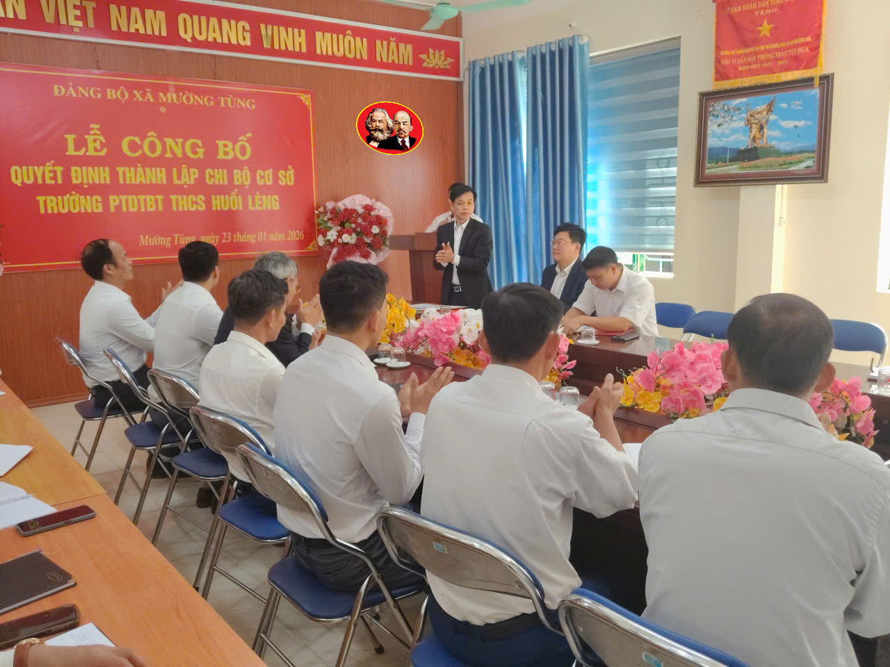 Thực hiện Điều lệ Đảng Cộng sản Việt Nam và Quyết định của Ban Thường vụ Đảng ủy xã Mường Tùng, ngày 23/01/2026, Chi bộ Trường PT DTBT THCS Huổi Lèng đã long trọng tổ chức Lễ công bố quyết định thành lập Chi bộ cơ sở. Buổi lễ diễn ra trong không khí trang nghiêm, đúng trình tự, thể hiện bước phát triển mới và khẳng định vai trò lãnh đạo toàn diện của Đảng đối với sự nghiệp giáo dục tại địa phương.
