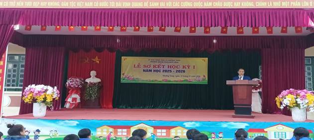 Thời gian như thoi đưa thấm thoát một nữa chặng đường của năm học 2025-2026 đã trôi qua. Mặc dù còn nhiều khó khăn về điều kiện cơ sở vật chất và đời sống học sinh bán trú, nhưng với sự quan tâm chỉ đạo sát sao của các cấp lãnh đạo, sự nỗ lực, tâm huyết của đội ngũ giáo viên và tinh thần cố gắng vươn lên của các em học sinh, nhà trường đã đạt được nhiều kết quả đáng ghi nhận. Chất lượng dạy và học từng bước được nâng cao, nề nếp kỷ cương được duy trì ổn định; các phong trào thi đua, hoạt động trải nghiệm, văn hóa – văn nghệ, thể dục – thể thao được tổ chức hiệu quả, góp phần giáo dục toàn diện cho học sinh.