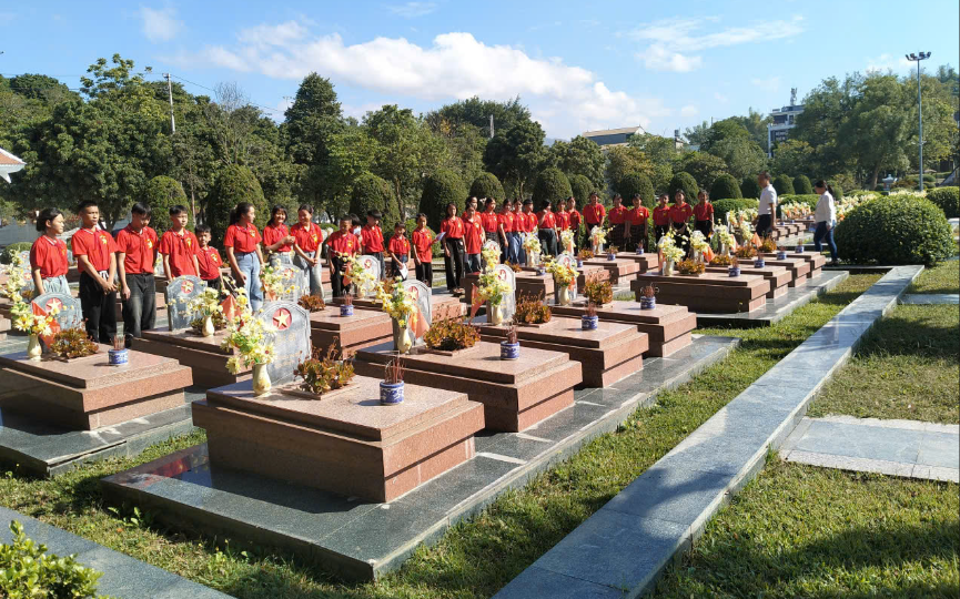 Khoảnh khắc xúc động nhất là khi các em dâng hương, lắng nghe câu chuyện về sự hy sinh anh dũng của thế hệ cha anh, biến những con chữ khô khan trong sách giáo khoa thành niềm tự hào và sự biết ơn vô bờ bến đối với di sản mà các em đang gìn giữ.