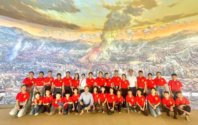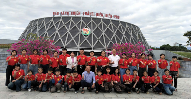 Đoàn đã đặt chân đến thành phố Điện Biên Phủ lịch sử, nơi đã làm nên chiến thắng "Lừng lẫy năm châu, chấn động địa cầu." Dưới sự hướng dẫn của thầy trưởng đoàn và các thầy cô phụ trách, 30 em học sinh, với niềm tự hào của những người con sinh ra và lớn lên trên mảnh đất lịch sử, đã có cơ hội viếng thăm và bày tỏ lòng tri ân sâu sắc tại các địa danh: Nghĩa trang A1, Bảo tàng chiến thắng Điện Biên Phủ, Đồi A1, Hầm Tướng Đờ Cát-xtơ-ri, Tượng đài Chiến thắng Điện Biên Phủ.