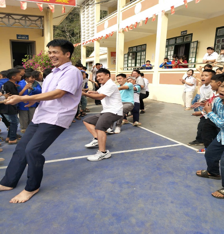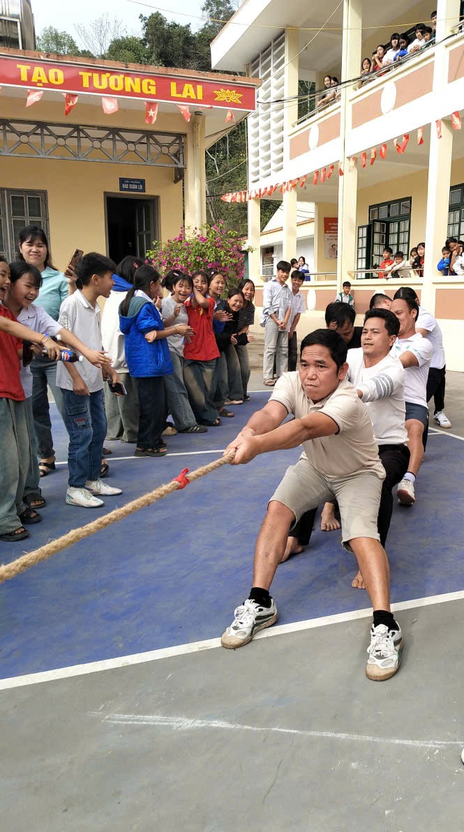 Sân thể dục của nhà trường đã trở nên náo nhiệt hơn bao giờ hết. Mở màn cho chuỗi hoạt động vui xuân là môn Kéo co – nội dung luôn nhận được sự cổ vũ nồng nhiệt nhất. Với quy định nghiêm ngặt về trọng lượng để đảm bảo tính công bằng (tối đa 350kg cho khối 6-7 và 400kg cho khối 8-9), các đội thi đã cống hiến những màn rượt đuổi tỉ số kịch tính. Những tiếng hò reo "Cố lên! Cố lên!" vang động cả một góc trời, minh chứng cho tinh thần quyết tâm và sự gắn kết của các tập thể lớp.
