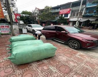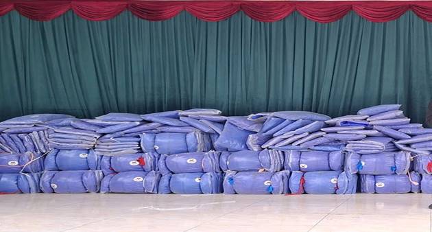 | Áo ấm của đoàn từ thiện được tập kết tại sân khấu |