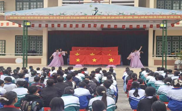 Mở đầu chương trình là các tiết mục văn nghệ chào mừng của các bạn học sinh trong nhà trường.