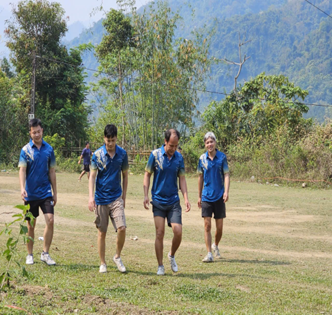 Trên sân cỏ, khi tiếng còi khai cuộc vang lên cũng là lúc sức nóng tại sân vận động xã đẩy lên đỉnh điểm. Không còn vẻ nghiêm nghị thường ngày trên bục giảng, các thầy giáo và đoàn viên thanh niên nhà trường đã hóa thân thành những cầu thủ đầy tốc độ. Từng pha bóng khéo léo, những cú sút dứt điểm đầy quyết đoán không chỉ cho thấy một sức khỏe dẻo dai mà còn là sự gắn kết tuyệt vời bởi tinh thần đồng đội. Dù mồ hôi ướt đẫm áo, nhưng nụ cười vẫn luôn rạng rỡ trên môi mỗi khi một pha cứu thua xuất sắc hiện diện.